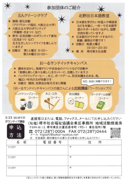 (社福)堺市社会福祉協議会 東区事務所 地域活動推進係