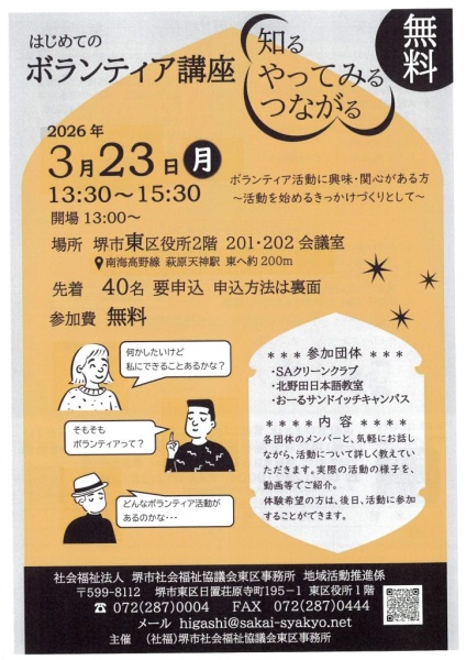 <社協 東区事務所>「はじめてのボランティア講座」開催のお知らせ