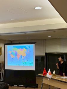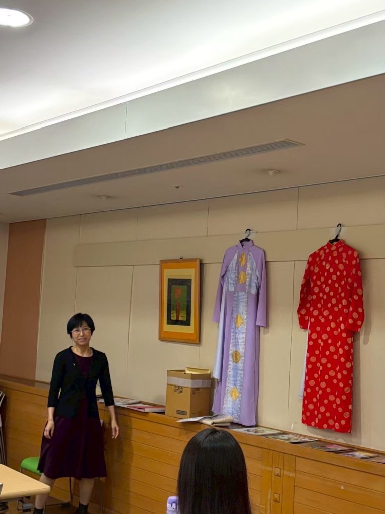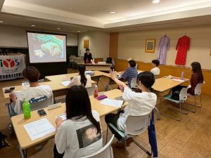 公益財団法人太平洋人材交流センター(PREX)のベトナム人人材育成研修で通訳を担当されている桶谷さんをお招きし、ベトナム文化を学びました。気候や食文化、服装なども具体物を用いて教えていただきました。現地で子どもたちがしている遊びなども体験しながら、異文化に親しみました。17期生として人権や多文化について共に学び、人とのつながりも大切にしてほしいです。