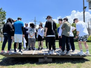 関西大学堺キャンパスで人間健康学部の灘英世名誉教授のご指導のもと、アドベンチャープログラムに参加しました。太平洋人材交流センター(PREX)のベトナム人人材育成研修の方々と一緒に国籍や文化の違いを越えたチームづくりを実践しました。プログラムを通して、人とつながり、どう合意形成をはかっていくか、相手を理解するとはどういうことかについて学びました。