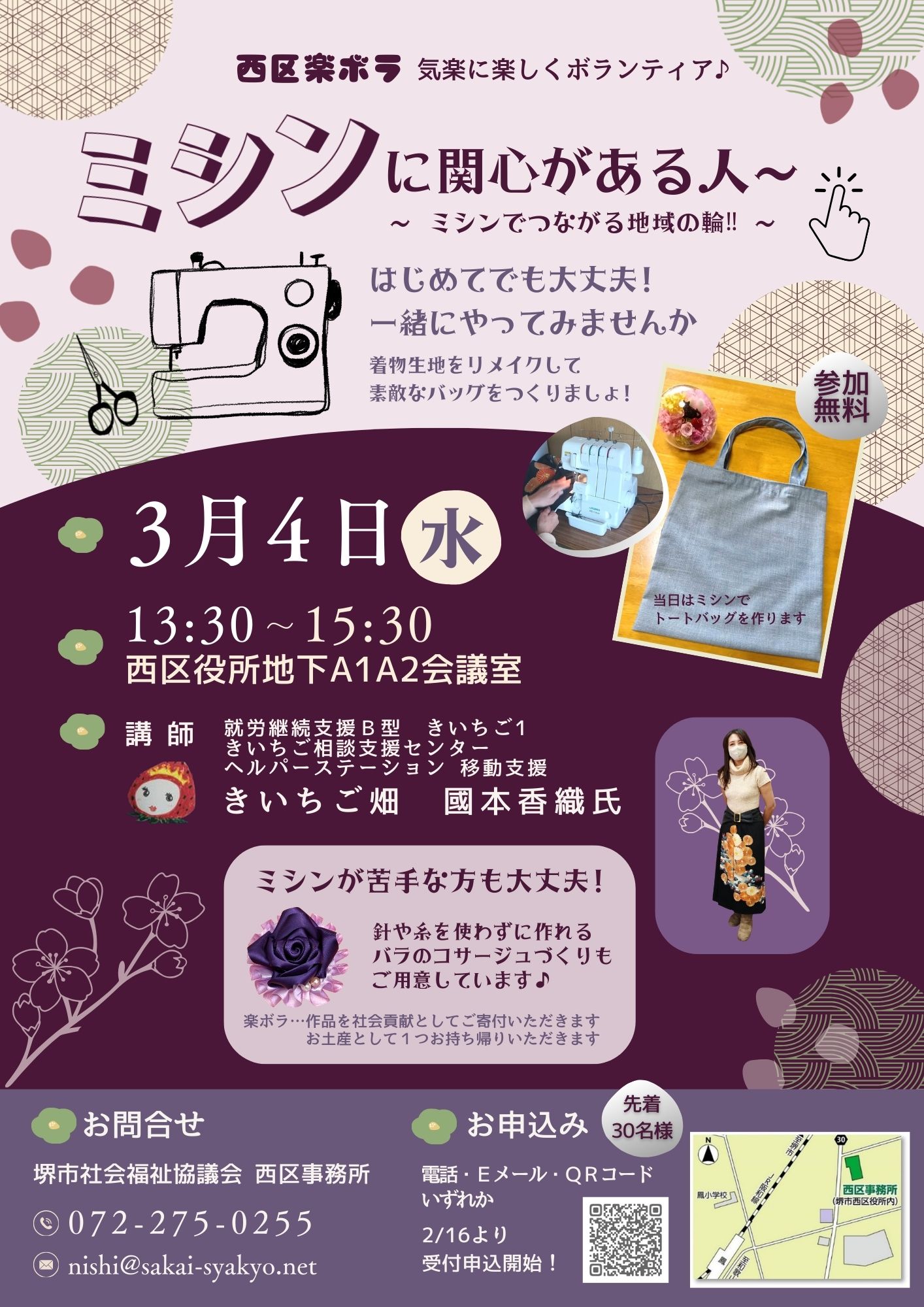 3月4日(水)13:30から西区役所 地下会議室にて、西区でおなじみの『楽ボラ』を開催します。