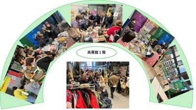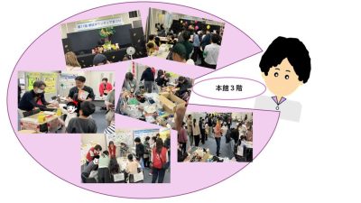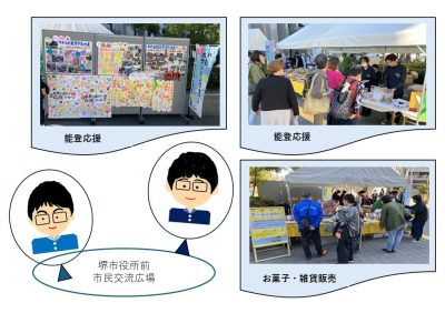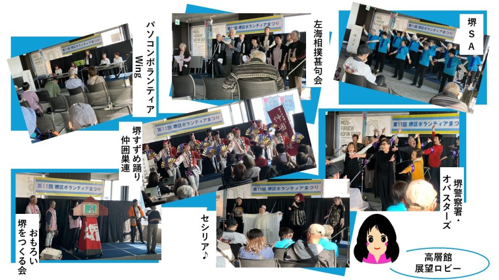 堺市役所高層館21階展望ロビーではステージ発表、1階ではバザー・フリーマーケットなどが行われました。